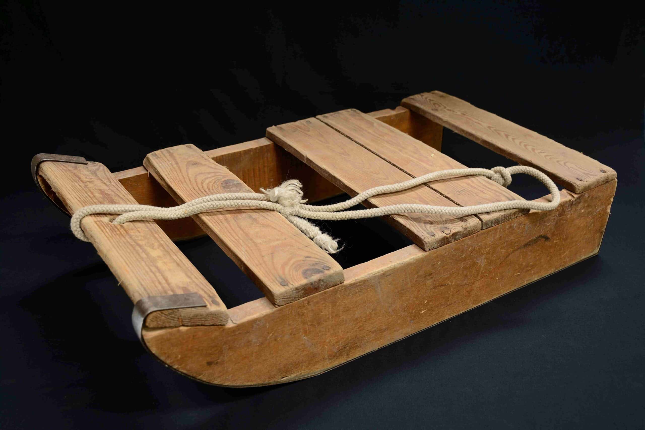 Valitsin esiteltäväksi esineen sekä kuvan, koska nämä liittyvät toisiinsa. Esine on lasten kelkka Parkkarilan päiväkodista ja valokuvassa puolestaan lasketaan tällaisella kelkalla samaisen päiväkodin alueella.